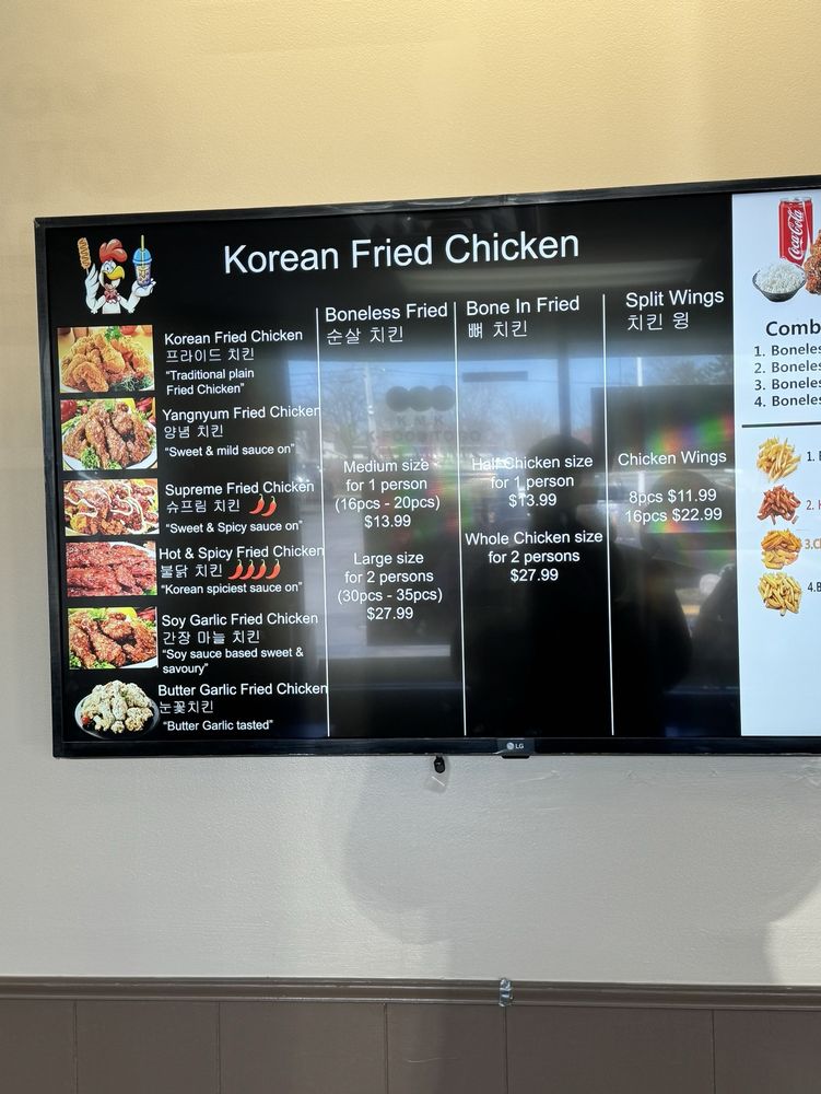 The menu is a delightful spread, showcasing the beloved Korean Fried Chicken. Whether you opt for crispy chicken wings or tender bone-in fried chicken, each bite is infused with distinct flavors like sweet garlic butter and spicy Korean sauces, perfect for wing aficionados.